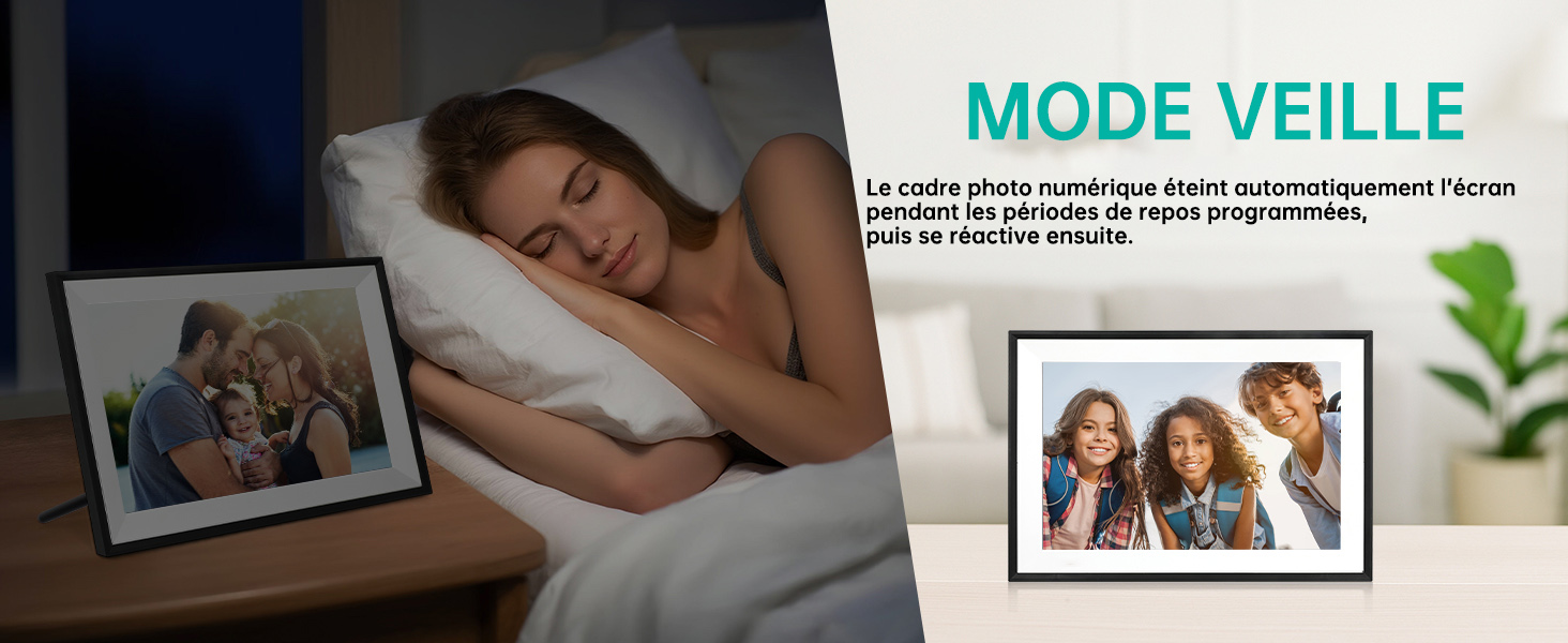 Prend en charge la connexion via Wi-Fi et l'application Frameo en un seul clic. Les membres de la famille peuvent télécharger des photos et des vidéos à tout moment et en tout lieu, qui seront automatiquement synchronisées avec le cadre. Peu importe la distance qui vous sépare, vous pouvez partager la chaleur de la vie et rapprocher l'amour.