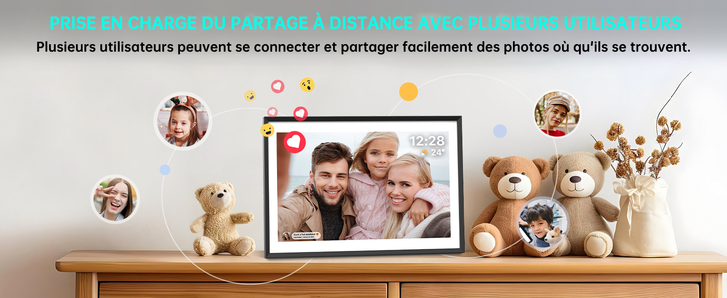 Oui, plusieurs personnes peuvent envoyer des photos au cadre photo via l'application, ce qui permet à la famille et aux