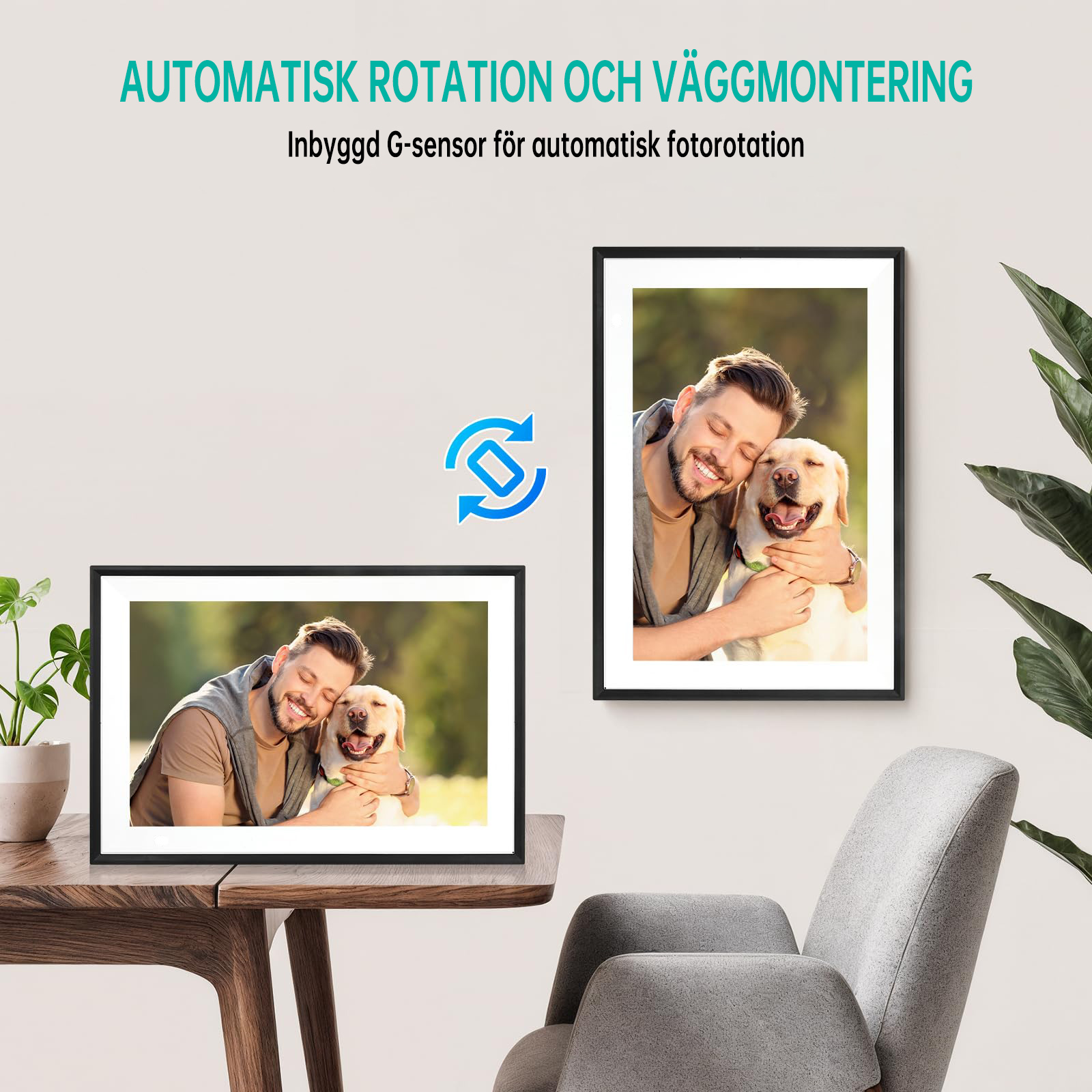 Équipé d'une puce intelligente intégrée avec capteur de gravité, il pivote automatiquement les photos et les vidéos dans l'orientation optimale, que l'image soit placée à l'horizontale ou à la verticale. Aucun réglage manuel n'est nécessaire ; il s'adapte sans effort à différentes méthodes de placement et garantit un affichage parfait de chaque image.