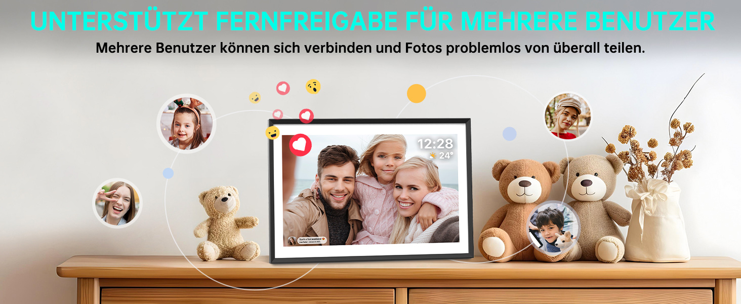 Grâce au Wi-Fi intégré, il est facile de se connecter à son smartphone et de partager du contenu à distance. Partagez vos photos et vidéos directement sur le cadre photo numérique, où que vous soyez, afin que votre famille puisse toujours profiter de vos plus beaux moments. Plusieurs utilisateurs peuvent partager du contenu et le diaporama est automatiquement mis à jour : le plaisir est toujours au rendez-vous.